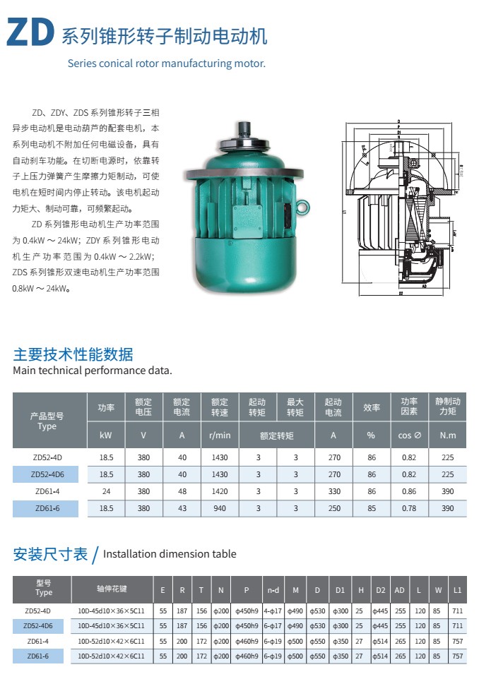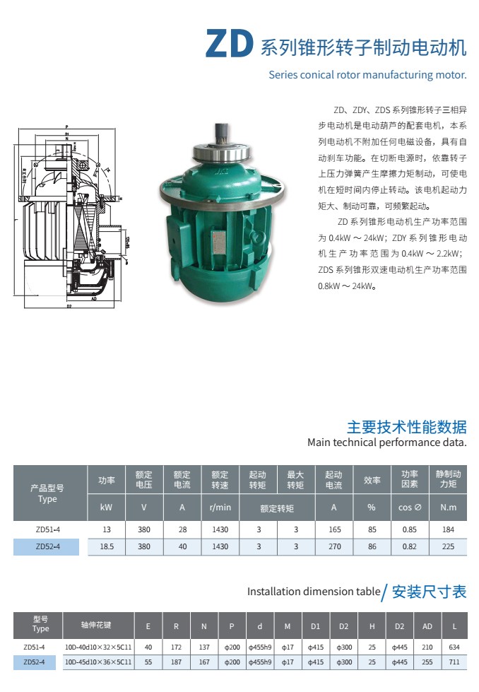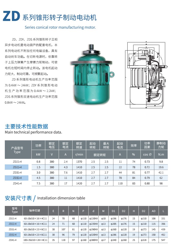 ZD系列錐形轉(zhuǎn)子制動電動機